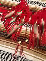 - Fringe is decorated with oval and circle wood beads with 10 different feather patterns