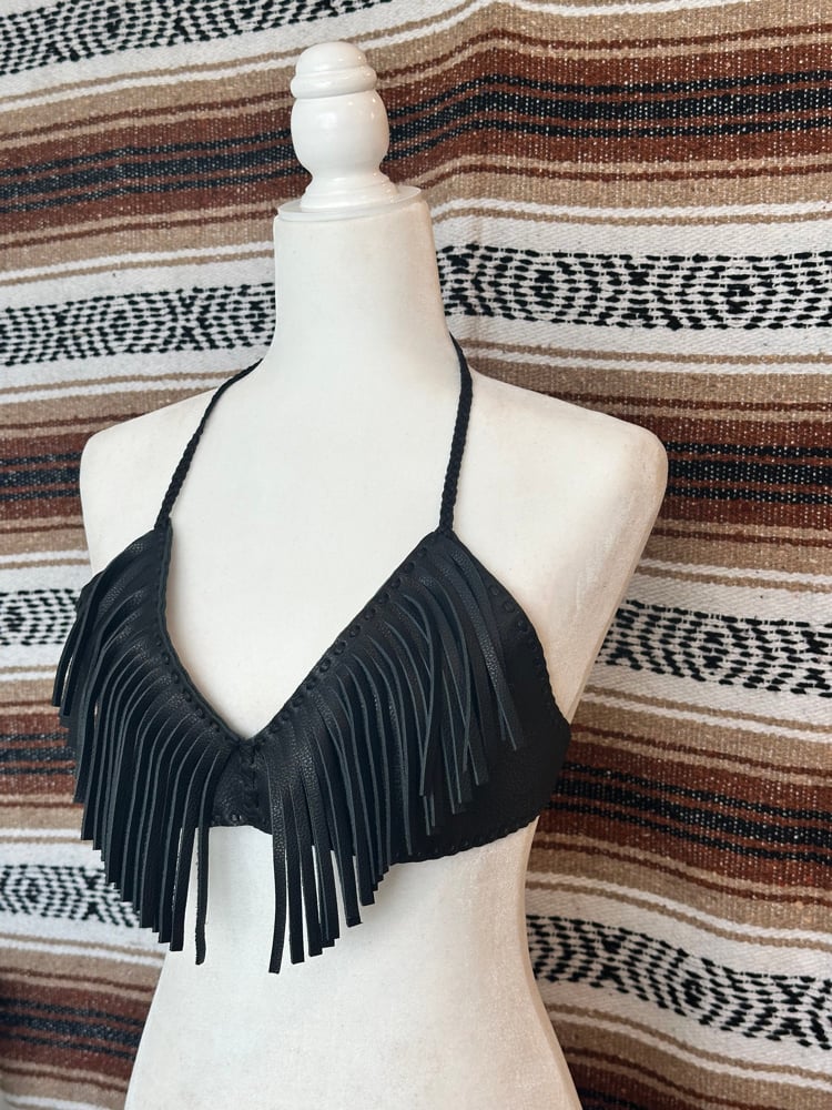 - Braided halter straps tie at the neck & back